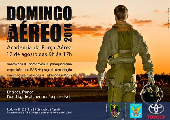 O Domingo Aéreo da AFA 2014 acontecerá no dia no dia 17 de agosto, das 9h às 17h, na Academia da Força Aérea.