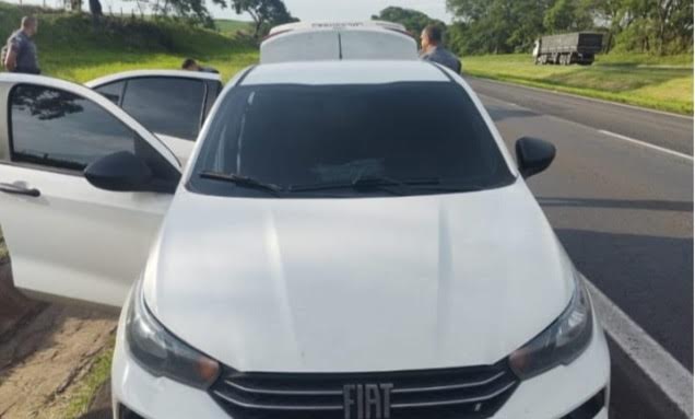 Os Policiais deslocaram até a rodovia com objetivo de interceptar o tal veículo, em dado momento foi avistado o mesmo, quando iniciou-se um acompanhamento e, na tentativa de aproximação, foi notado um segundo veículo, sendo um Fiat Cronos branco, que aparentava estar na escolta do mesmo, e este começou a retardar a aproximação da equipe policial.