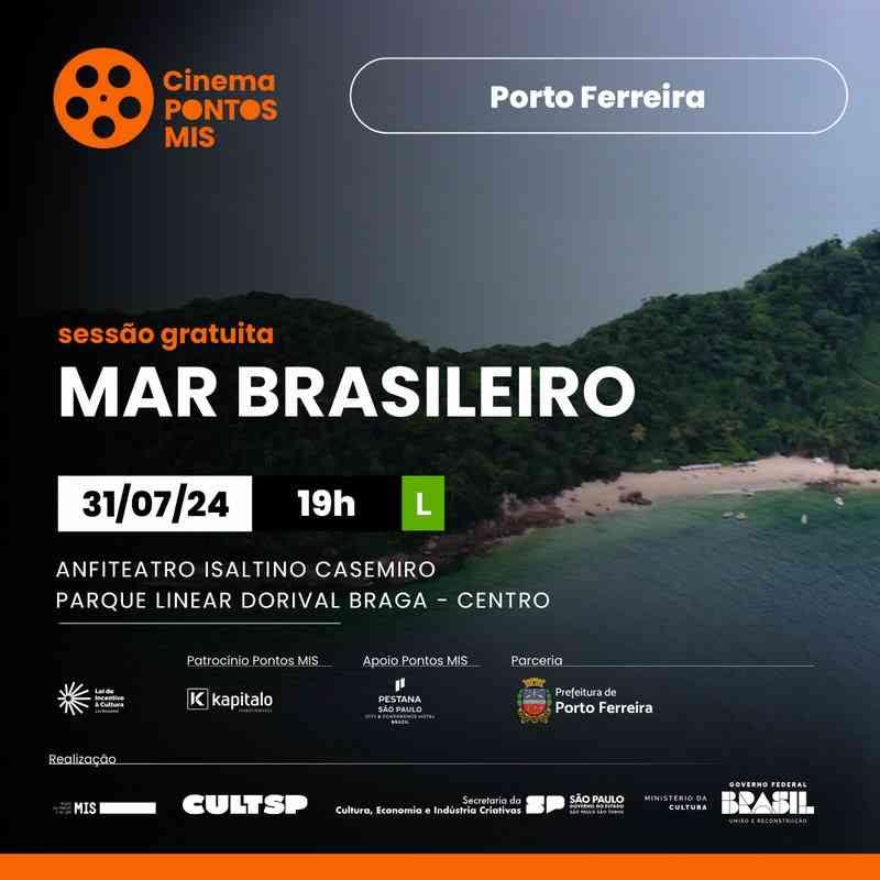 Na próxima quarta-feira (31/07), o documentário “Mar Brasileiro”, dirigido Luciano Oreggia e Pedro Saad, será exibido a partir das 19h no Anfiteatro Municipal Isaltino Casemiro, localizado no Parque Linear Dorival Braga. A entrada é gratuita.