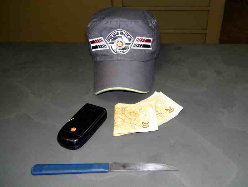 A passageira foi revistada com o apoio da GM Eliana, sendo localizada em sua cintura uma faca de cozinha.