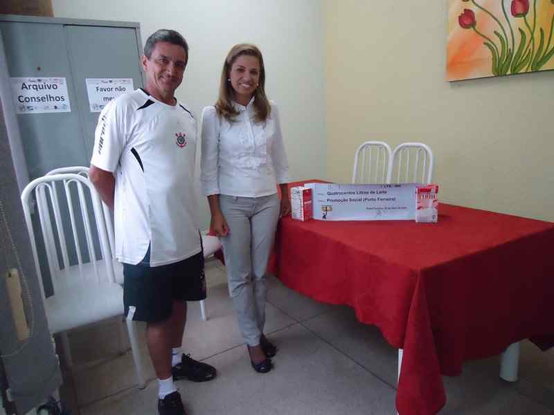Esta semana, o organizador da Caminhada da Fé, o comerciante Gilberto Aparecido Spagnolo, fez a entrega dos 400 litros de leite à primeira-dama Viviane Santana Rasi, presidente do Fundo Social de Solidariedade.