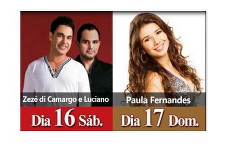 Hoje o show será com a dupla Zezé di Camargo & Luciano, com o preço de R$ 25,00 para entrada de todos, e o show de amanhã de Paula Fernandes custa R$ 15,00 para todos.