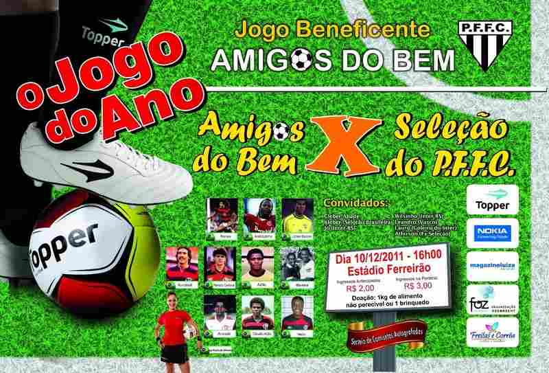 No próximo sábado,10 de dezembro, às 16:00 horas, acontecerá no Estádio do Ferreirão o jogo mais esperado do ano em Porto Ferreira, Amigos do Bem X Seleção do PFFC. O evento se encontra em sua segunda edição, dado o sucesso alcançado em 2010 no jogo que reuniu paulistas X cariocas.