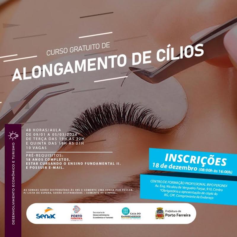 A Prefeitura de Porto Ferreira, em parceria com o Senac (Serviço Nacional de Aprendizagem Comercial), por intermédio da Secretaria de Desenvolvimento Econômico e Turismo, oferece vagas para mais um curso profissionalizante, no Centro de Formação Profissional Irpo Perondi, totalmente gratuito.