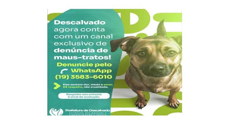 Descalvado agora conta com um importante aliado no combate ao abandono e maus-tratos contra animais. Desde o início do mês os munícipes podem fazer denúncias desse tipo por meio do telefone (19) 3583-6010, inclusive pelo Whatsapp.