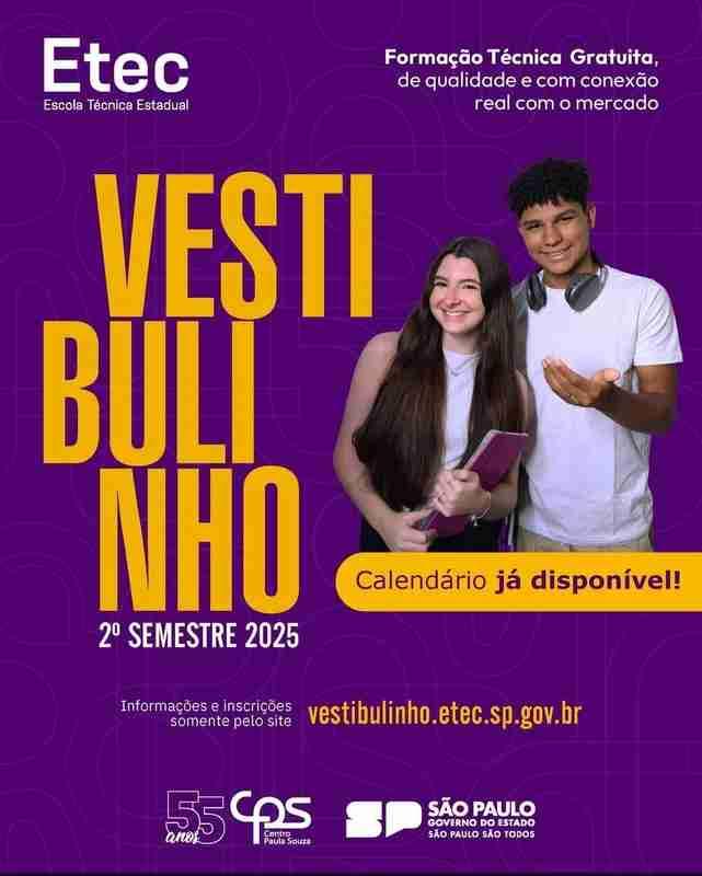 A relação completa de unidades, cursos e vagas do processo seletivo para o segundo semestre de 2025 pode ser consultada no site oficial do Vestibulinho das Etecs.
