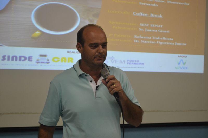 O Sr. Juarez Giusti, representate do SEST SENAT – unidade de Limeira – falou da infraestrutura, dos cursos e atendimentos que a unidade de Porto Ferreira, com previsão de inauguração para o início de 2018, oferecerá para os usuários do setor de transporte.