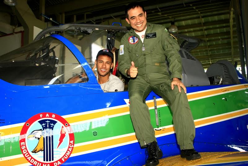 Jogador Neymar visita a Esquadrilha da Fumaça na Academia da Força Aérea