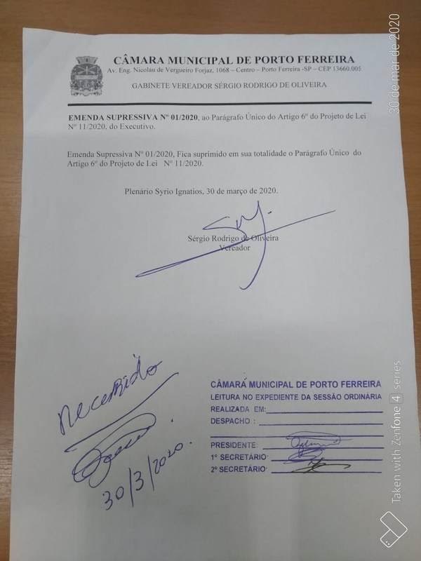 Devido à observação minuciosa do vereador prof. Sérgio Rodrigo de Oliveira, a Câmara de Porto Ferreira aprovou na última sessão do dia 30 de março, segunda-feira, o Projeto de Lei do prefeito (nº 11/2020) com a Emenda Supressiva (nº 01/2020), para que os servidores com contratos temporários, com prazos determinados e estagiários não fossem prejudicados.
