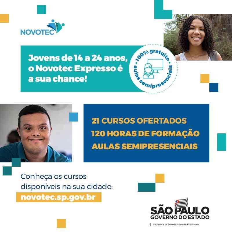 O Novotec Expresso é desenvolvido pela Secretaria de Desenvolvimento Econômico, em parceria com a Secretaria de Educação e o Centro Paula Souza. A modalidade disponibiliza cursos de qualificação profissional a jovens de até 24 anos, com duração de 120 horas, em parceria com escolas técnicas ou instituições tecnológicas de ensino superior. As novas vagas são voltadas a jovens das 16 regiões administrativas do estado de São Paulo e o início das aulas está previsto para 23 de agosto.