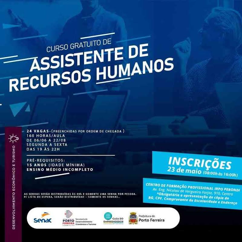 A Prefeitura Municipal de Porto Ferreira, em parceria com o SENAC por intermédio da Secretaria de Desenvolvimento Econômico e Turismo, oferece 24 vagas para o curso de Assistente de Recurso Humanos.