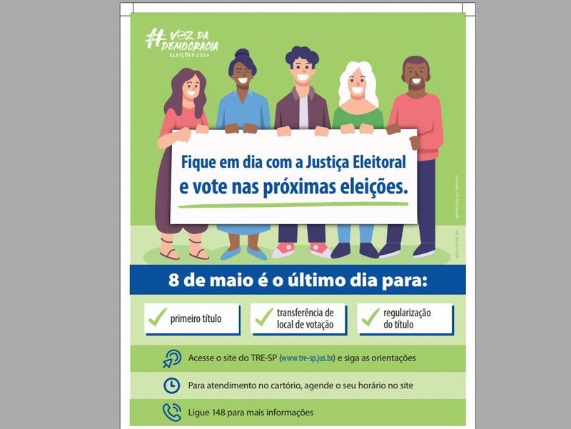 Eleições 2024: prazo para o alistamento eleitoral vai até 8 de maio