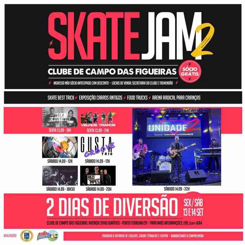 Seis bandas, DJ, atletas profissionais, food trucks, lojas e marcas, competições. Tudo isso a Diretoria Ação e Resultado, do Clube de Campo das Figueiras, em Porto Ferreira (SP), promete para o Skate Jam 2, o maior evento em celebração à cultura do skate de toda a região.