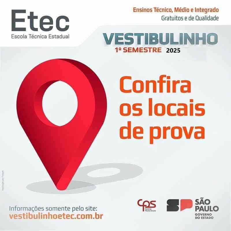 A informação ficará disponível na área do candidato no site vestibulinhoetec.com.br e na unidade em que se pretende estudar. A confirmação do local do exame é de inteira responsabilidade do candidato, que deve ficar atento às seguintes informações: