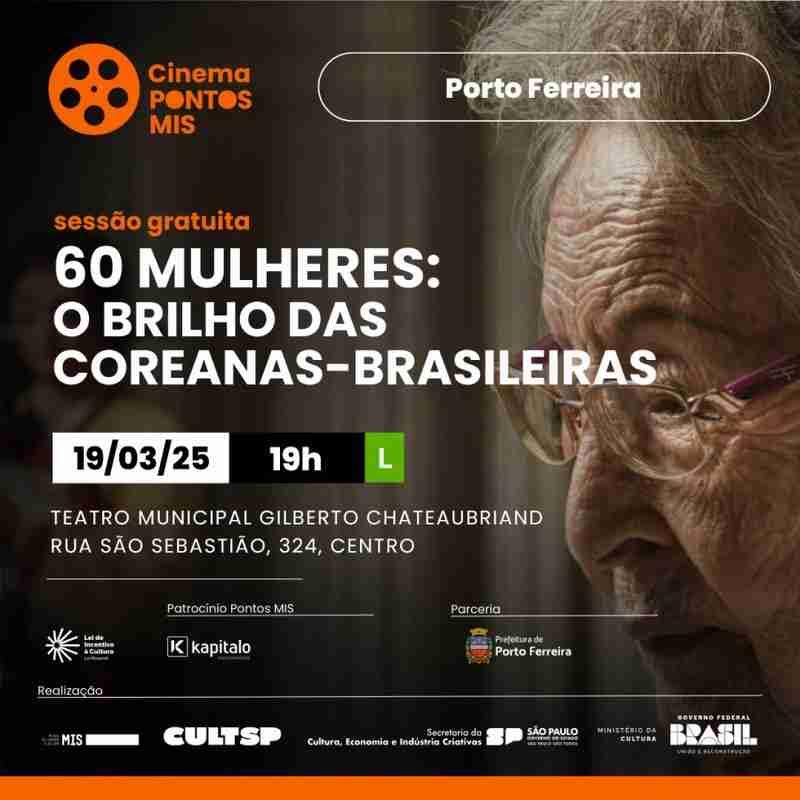 Nesta quarta-feira, 19 de março, a partir das 19 horas, o documentário “60 Mulheres – O brilho das coreanas-brasileiras”, será exibido no Teatro Municipal Gilberto Chateaubriand, localizado na Rua São Sebastião, 324, no Centro.