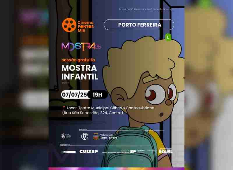 A Secretaria de Cultura e Economia Criativa de Porto Ferreira convida para mais uma sessão do projeto Pontos MIS, em parceria com o Museu da Imagem e do Som de São Paulo. Será uma mostra infantil com vários filmes na próxima segunda-feira (07/07), às 19 horas, no Teatro Municipal Gilberto Chateaubriand (rua São Sebastião, 324, Centro).