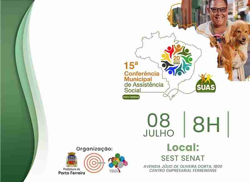 Na próxima terça-feira (08/07), às 8 horas, o município de Porto Ferreira promove a 15ª Conferência Municipal de Assistência Social, que acontecerá no Sest/Senat, localizado no Centro Empresarial Ferreirense (Cefer).