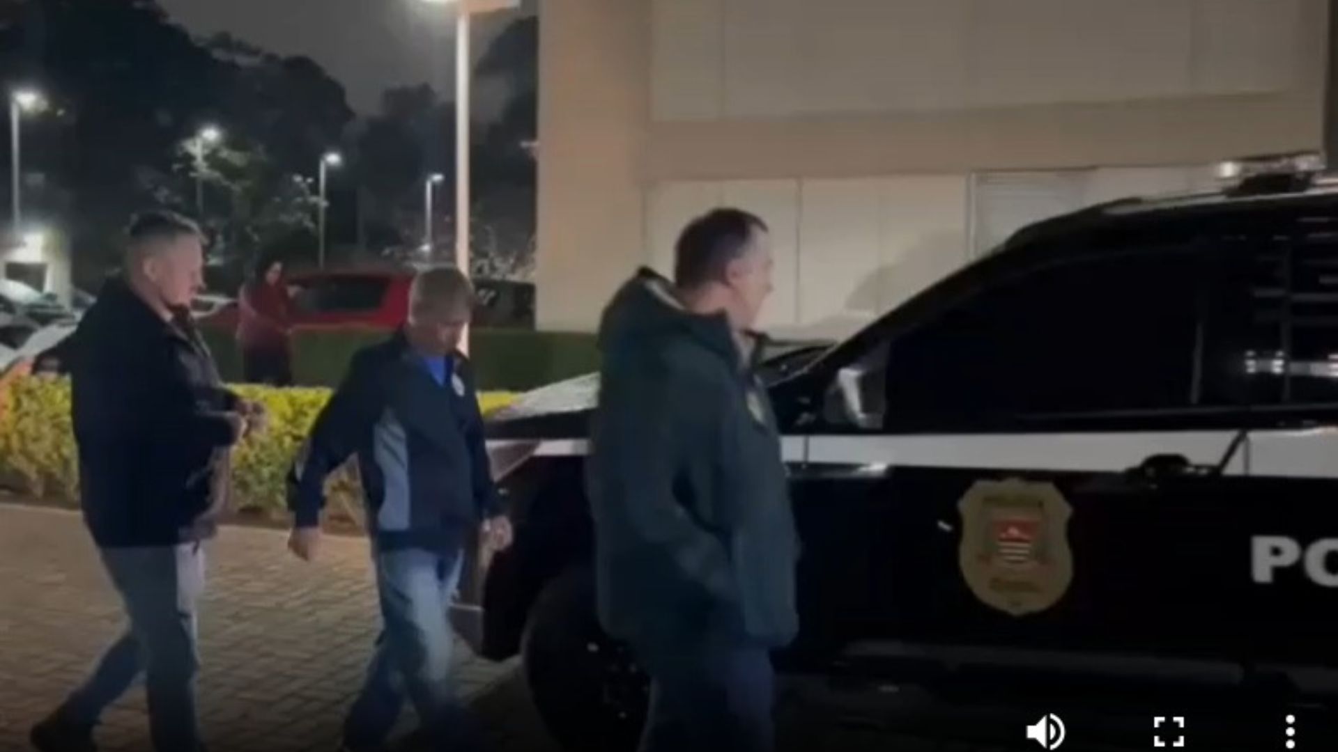 Um vídeo divulgado pelas autoridades mostra o momento da prisão de João Roque, que foi conduzido para a delegacia em uma viatura policial.