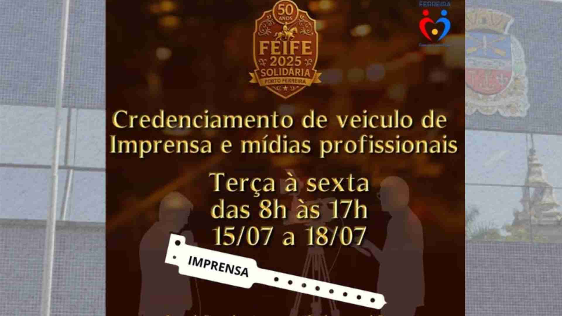 Credenciamento da imprensa para a FEIFE 2025 de Porto Ferreira estará aberto entre 15 e 18 de julho