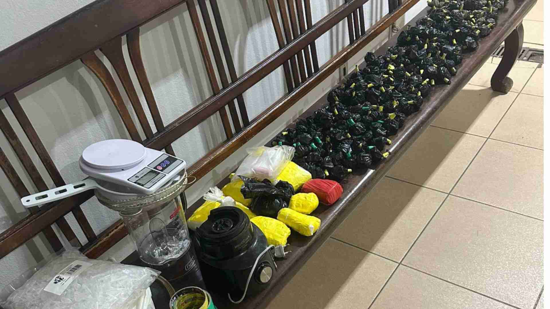 Ao chegarem ao local, os policiais encontraram uma grande quantidade de cocaína já embalada em microtubos, exposta em uma mesa no quintal da casa. Durante a busca no imóvel, foram apreendidos ainda oito pacotes de pasta base de cocaína, além de materiais utilizados para o refino e embalagem das substâncias.