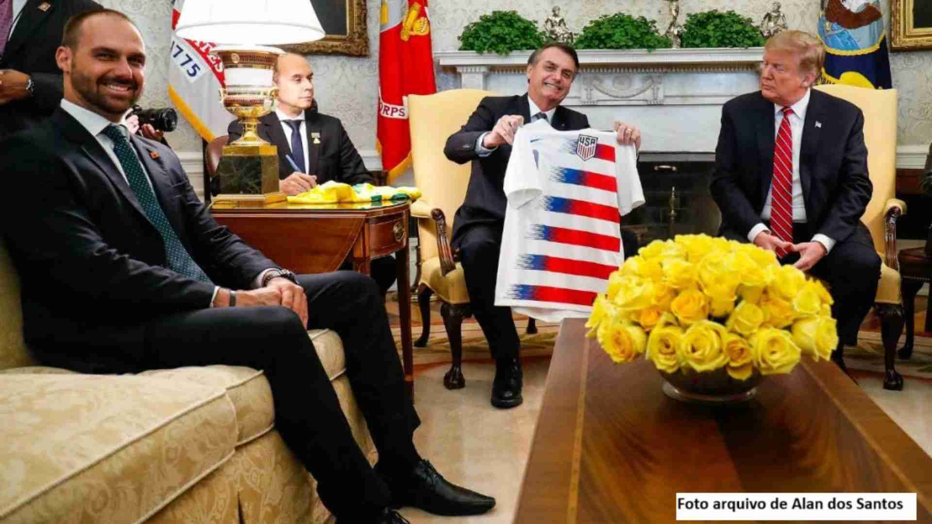 Eduardo Bolsonaro tem afirmado constantemente que tem articulado com autoridades estadunidaenses e aliados do “MAGA” (make america great again) a adoção de sanções e outras medidas para pressionar o Judiciário brasileiro.