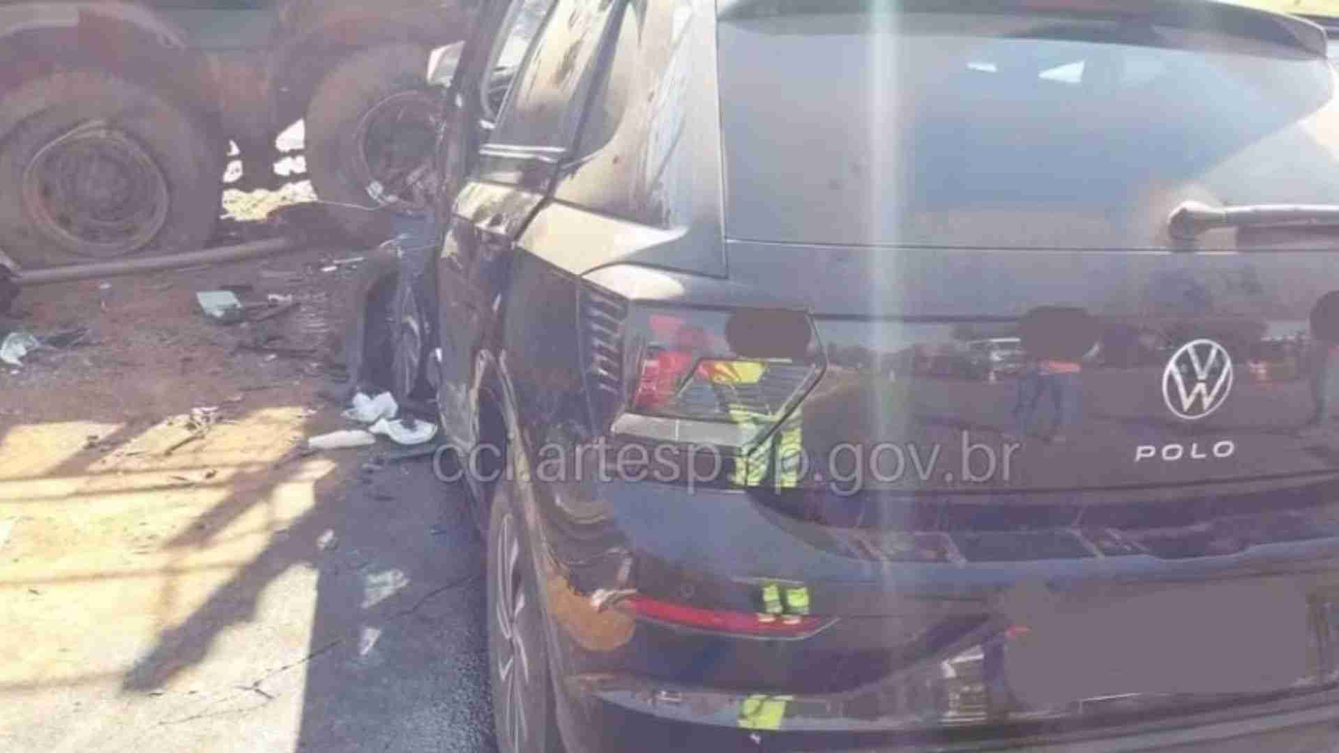 Segundo as informações preliminares, um Volkswagen Polo seguia no sentido leste da rodovia quando se deparou com um caminhão cruzando a pista. O motorista do carro não conseguiu frear a tempo e colidiu com a lateral do caminhão. O impacto foi tão forte que o condutor do Polo ficou gravemente ferido, necessitando de atendimento emergencial no local.