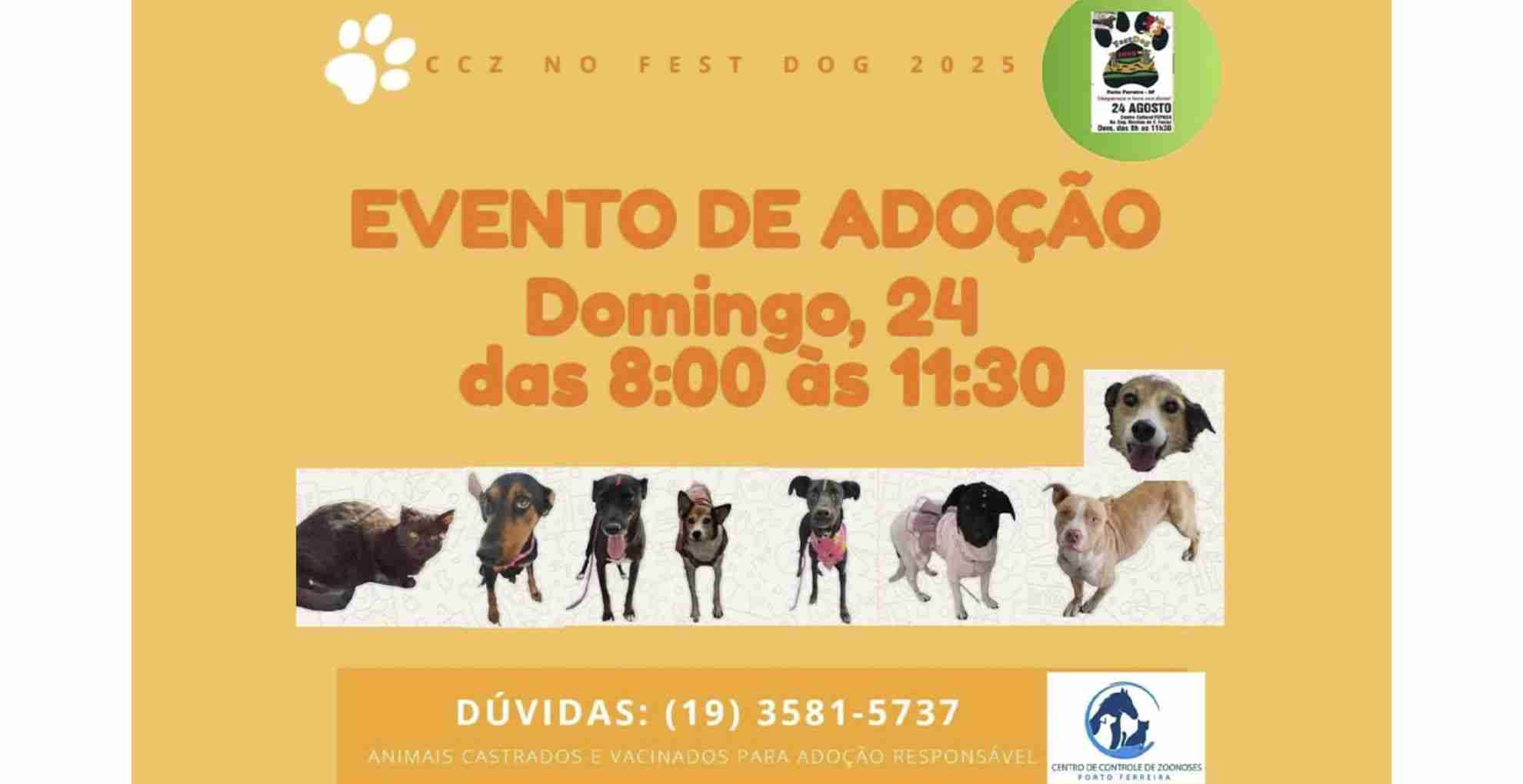 O Centro de Controle de Zoonoses de Porto Ferreira, vinculado à Secretaria Municipal de Saúde, realizará mais uma oportunidade para adoção de animais domésticos neste domingo (24/08), das 8h às 11h30, no Fest Dog. O evento acontecerá no Parque Linear Dorival Braga (antiga Fepasa).