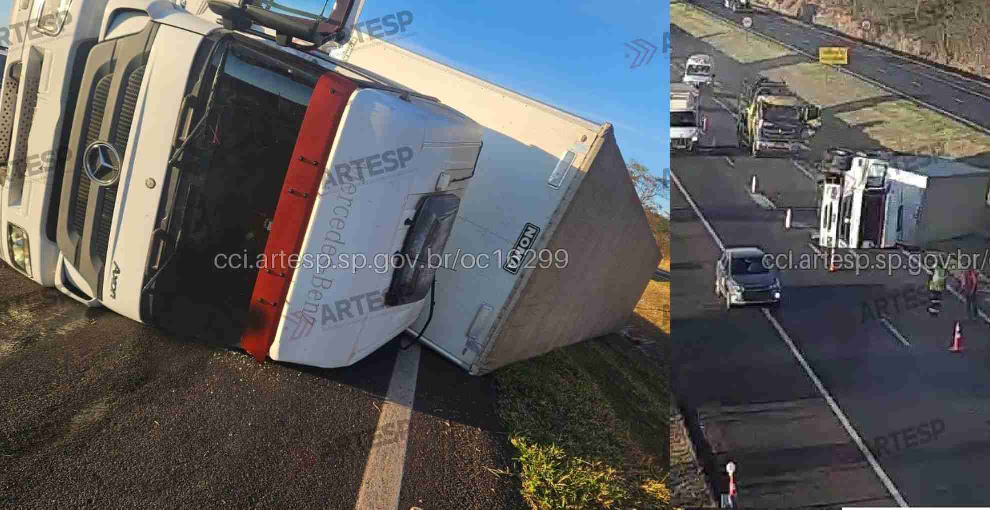 Segundo as autoridades, o motorista perdeu o controle do veículo, que tombou sobre o canteiro central e a faixa 1. A Polícia Militar Rodoviária foi acionada para orientar o trânsito e iniciar a operação de destombamento e remoção da carreta.