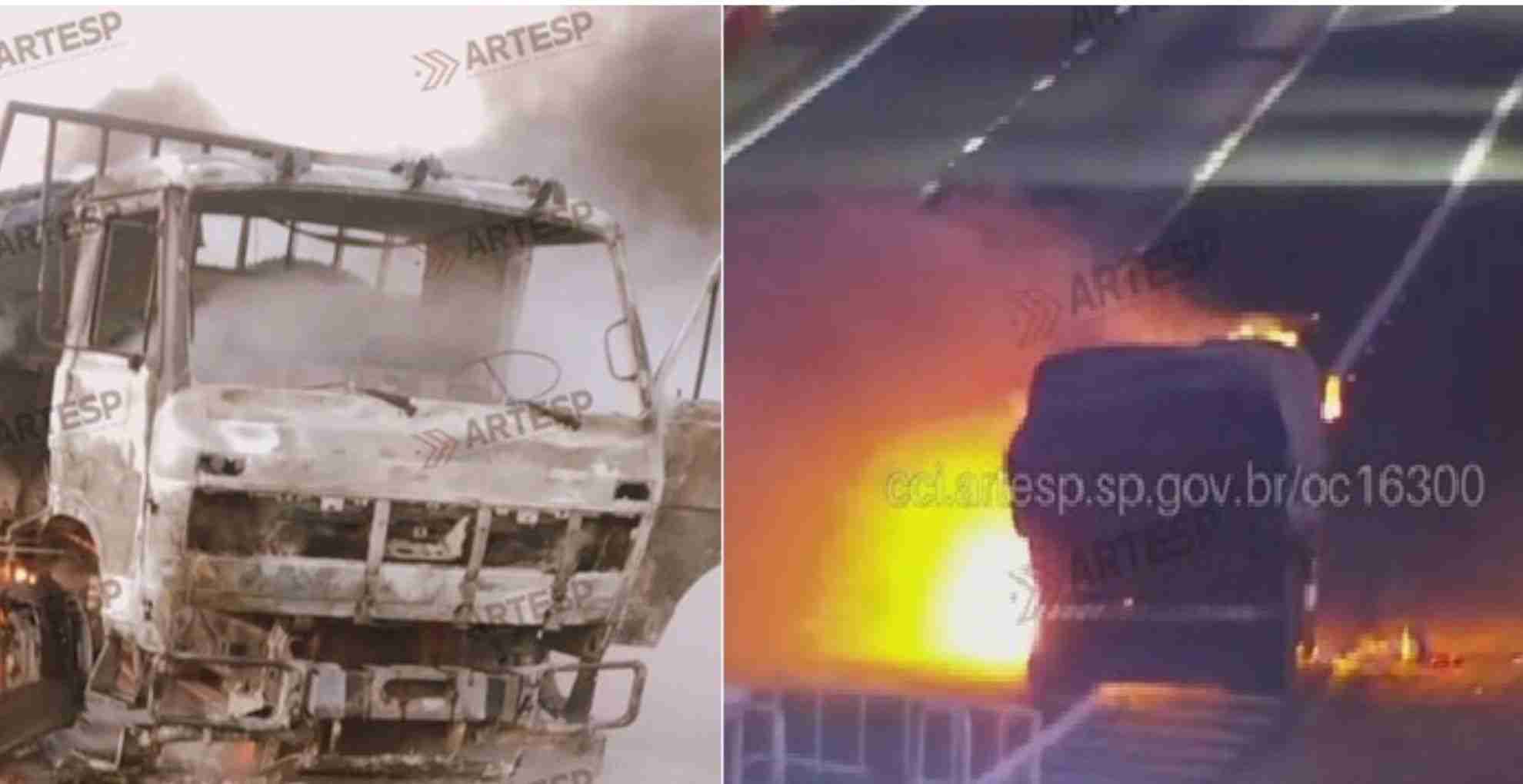 A Artesp divulgou uma imagem do caminhão tomado pelas chamas durante o incidente. A causa do incêndio ainda não foi divulgada.