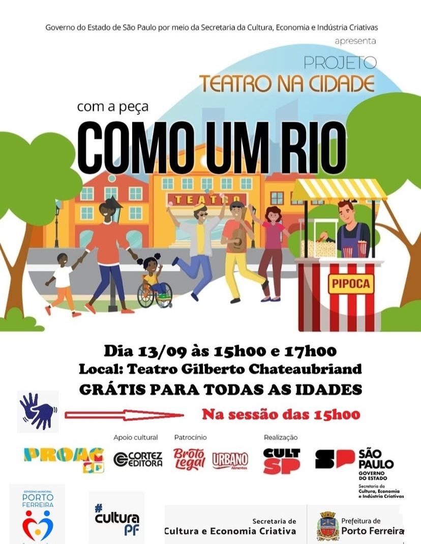 O Projeto Teatro na Cidade chega a Porto Ferreira trazendo arte, cultura e diversão para toda a família. No dia 13 de setembro, o Teatro Gilberto Chateaubriand receberá a peça “Como um Rio”, que será apresentada em duas sessões, às 15h e 17h.