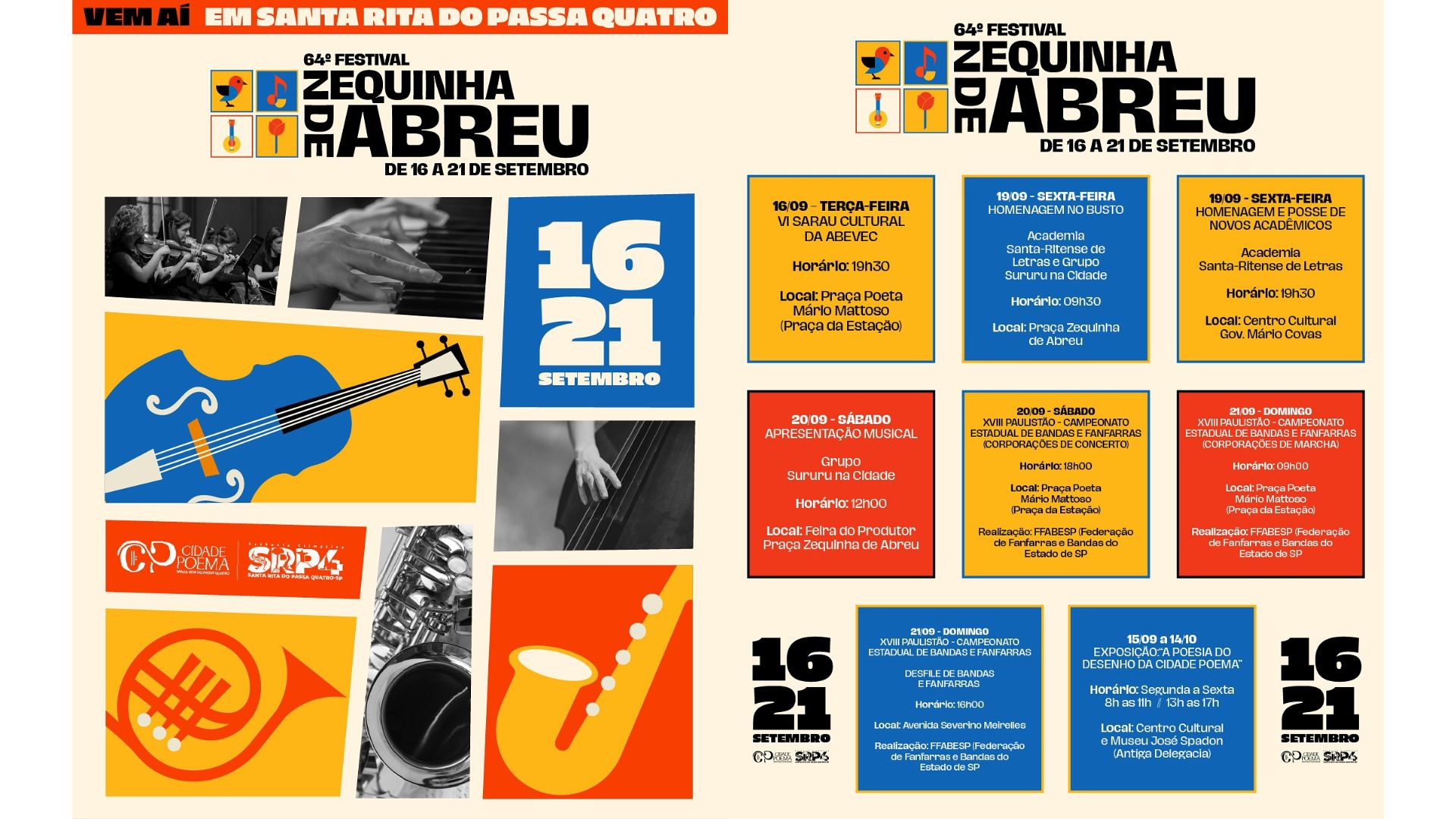 Com uma programação diversificada, o festival promete envolver a comunidade e visitantes em atividades que vão de saraus a concertos, passando por homenagens, desfiles de bandas e fanfarras. Mais do que um evento musical, a celebração reforça a identidade cultural e o orgulho de Santa Rita do Passa Quatro como berço de um dos maiores nomes da música popular brasileira.