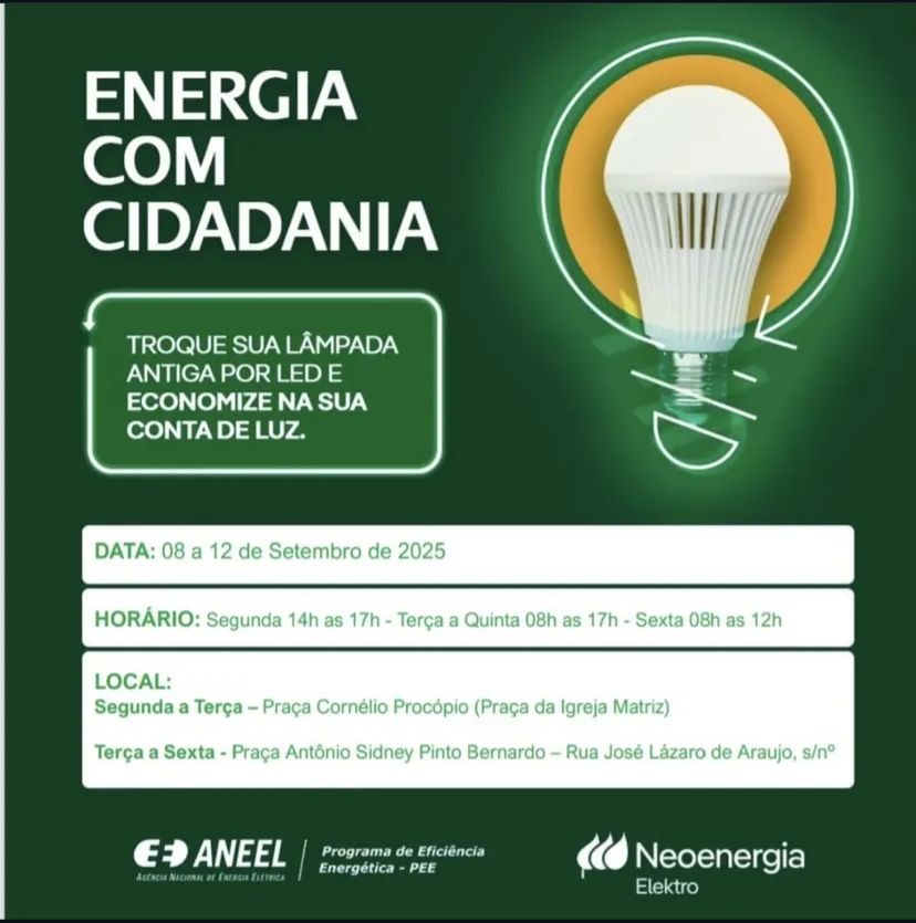O atendimento está acontecendo de duas formas: em ponto fixo, com unidade móvel na Praça da Matriz, Rua Coronel Procópio de Carvalho, nº 373-471, e porta a porta, diretamente nas residências. Além da substituição das lâmpadas, a equipe oferece orientações sobre o uso consciente de energia elétrica, ajudando os moradores a reduzir o consumo e a economizar na conta de luz.