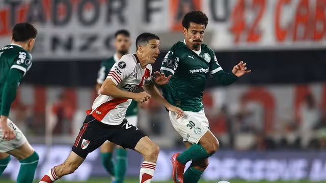 O Palmeiras largou na frente nas quartas de final da Conmebol Libertadores ao vencer o River Plate por 2 a 1, nesta quarta-feira (17), no Estádio Monumental de Núñez, em Buenos Aires. A equipe alviverde controlou o primeiro tempo, quando marcou com Gustavo Gómez e Vitor Roque, mas sofreu pressão nos minutos finais após o gol de Martínez Quarta.