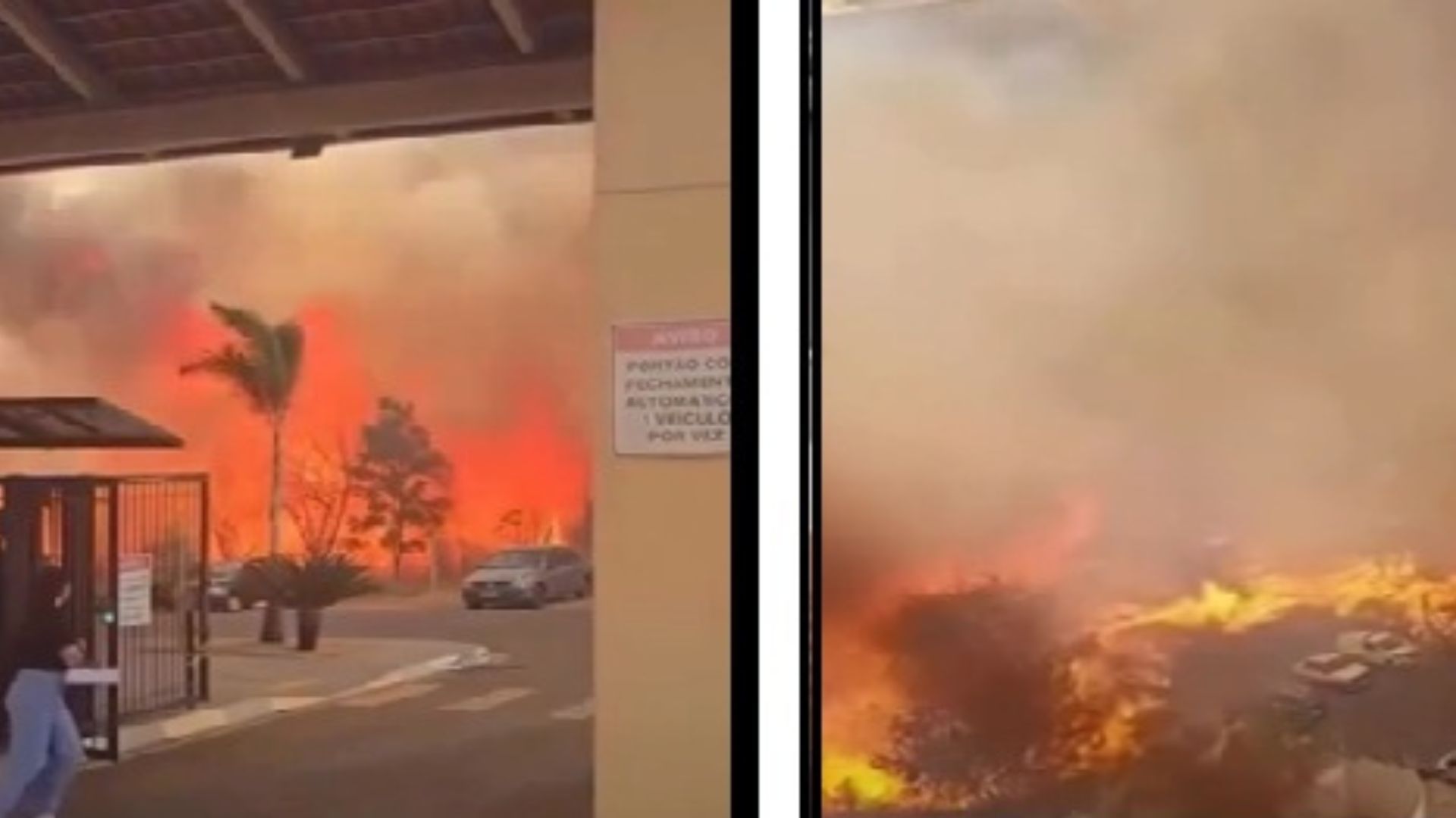 Incêndio de grandes porpoções consome área verde, atinge carros e provoca pânico em condomínio