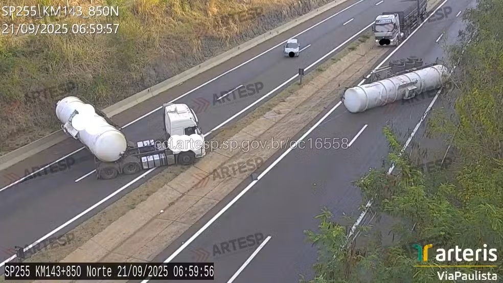 Uma carreta carregada com etanol tombou e interditou a Rodovia Comandante João Ribeiro de Barros, na altura de Jaú, no interior de São Paulo. O acidente ocorreu neste domingo, bloqueando completamente o trânsito e exigindo uma operação complexa para a remoção do veículo e limpeza da pista.