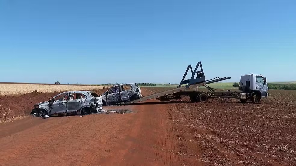 A Polícia Civil de Ribeirão Preto (SP) encontrou, na manhã desta sexta-feira (26), dois carros usados pela quadrilha que realizou um audacioso “arrastão” em um prédio de alto padrão no Centro da cidade na última quarta-feira (24). Os veículos estavam abandonados e incendiados em uma área rural do município, e a confirmação de que foram usados no crime veio após análises da perícia e imagens de câmeras de segurança do condomínio.