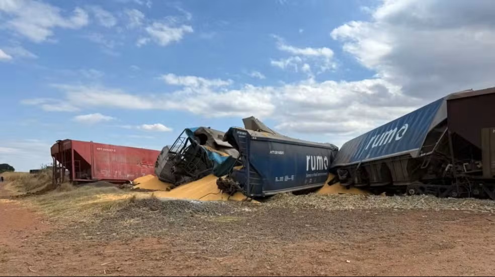 Um trem de carga carregado com milho descarrilou na tarde desta quinta-feira (25) em Araraquara (SP), após colidir com um caminhão que transportava cana-de-açúcar. O acidente aconteceu em uma passagem de nível nas proximidades do bairro Aparecidinha, próximo à Estação do Ouro. Apesar da violência do impacto, não houve feridos.