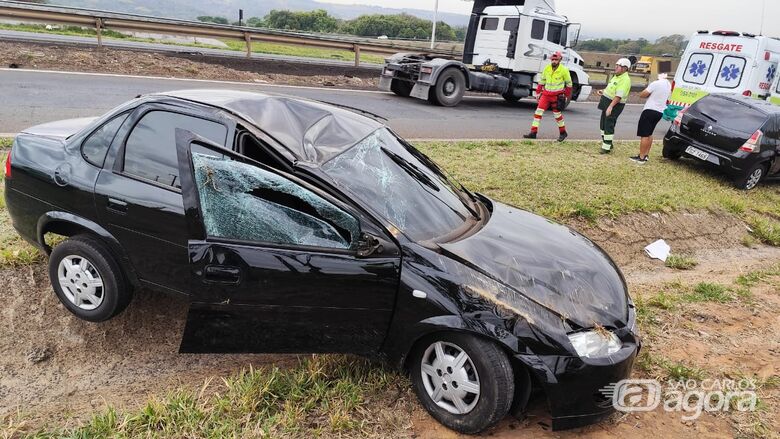 Na manhã desta segunda-feira (29), um capotamento foi registrado na alça de acesso da Rodovia Washington Luís (SP-310), no km 228, sentido SP-215, nas proximidades da empresa Mapfre, em São Carlos (SP).