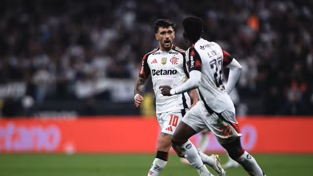 Rubro-Negro vence por 2 a 1 na Neo Química Arena, chega aos 54 pontos e abre vantagem na ponta da tabela; gols foram de Arrascaeta e Luiz Araújo