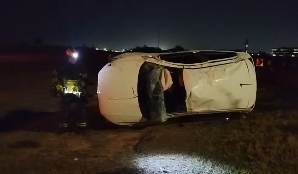 O acidente aconteceu por volta das 4h, no trecho que liga a alça de acesso da SP-324 à Rodovia Santos Dumont, na região do bairro Cidade Singer I, próximo a uma travessia de pedestres. Após o capotamento, o motorista abandonou o local, deixando o passageiro caído no chão.