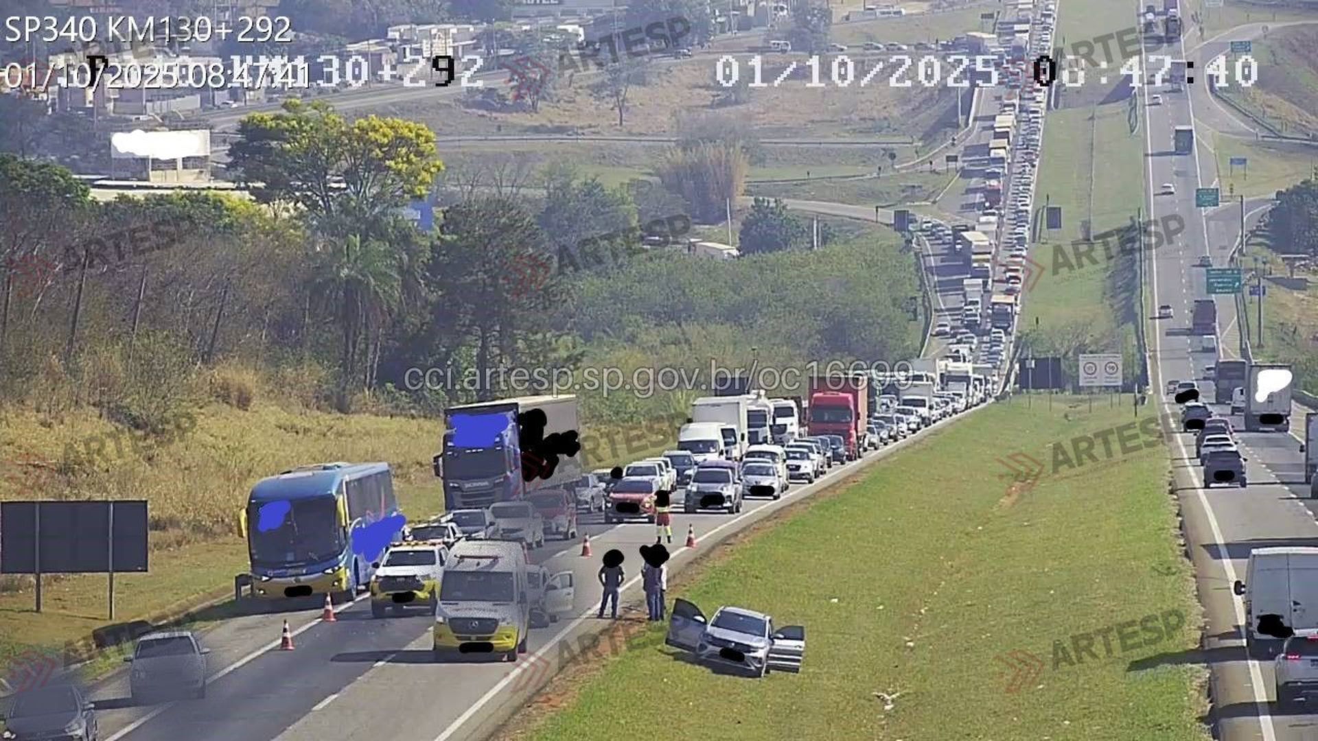 Um engavetamento envolvendo três veículos provocou o bloqueio parcial de faixas e causou congestionamento na manhã desta quarta-feira (1º) na Rodovia SP-340, no km 130+500, entre os municípios de Jaguariúna e Campinas, sentido sul.