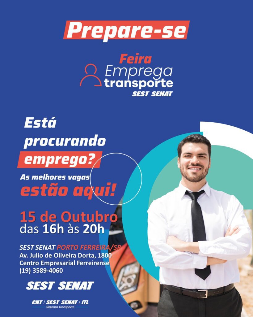 No dia 15 de outubro, Porto Ferreira será sede da Feira Emprega Transporte, um evento nacional promovido pelo Sest/Senat que tem como objetivo aproximar empresas do setor de transporte de profissionais em busca de emprego. A ação acontecerá das 16h às 20h, na unidade local do Sest/Senat, situada na Avenida Júlio de Oliveira Dorta, 1.800, no Centro Empresarial Ferreirense (Cefer).