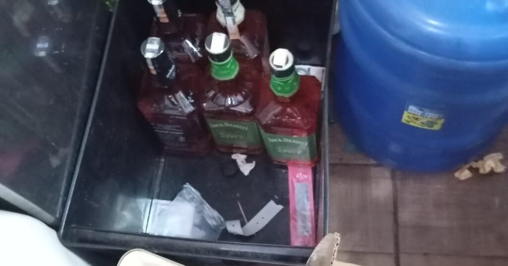 Durante a fiscalização, dezenas de garrafas de uísque foram apreendidas. Segundo os agentes, muitas não apresentavam a coloração típica da bebida e levantaram suspeitas quanto à autenticidade. Também foram encontrados frascos vazios e líquidos que podem ter sido utilizados na adulteração.