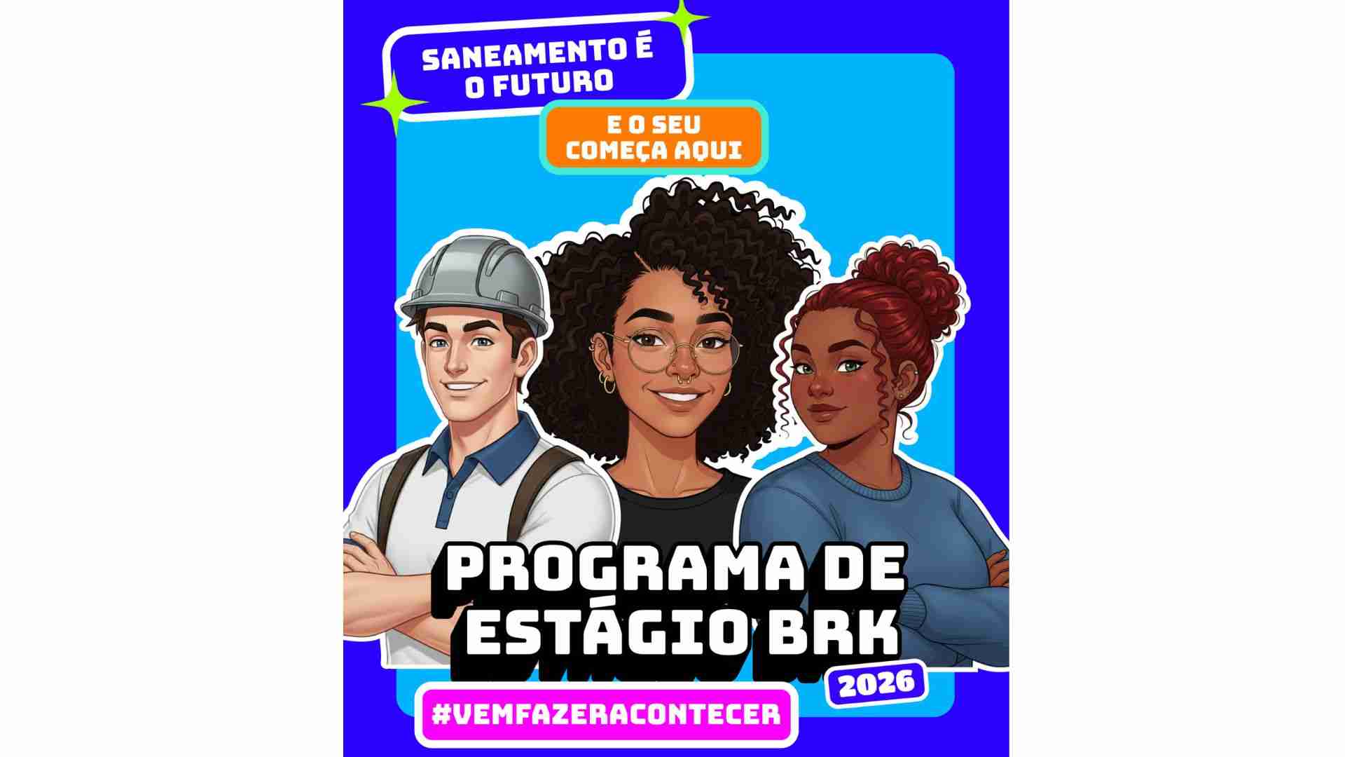 As inscrições para o Programa de Estágio BRK 2026 podem ser feitas pelo site www.brkambiental.com.br/estagio2026. As vagas também estão no LinkedIn da BRK.