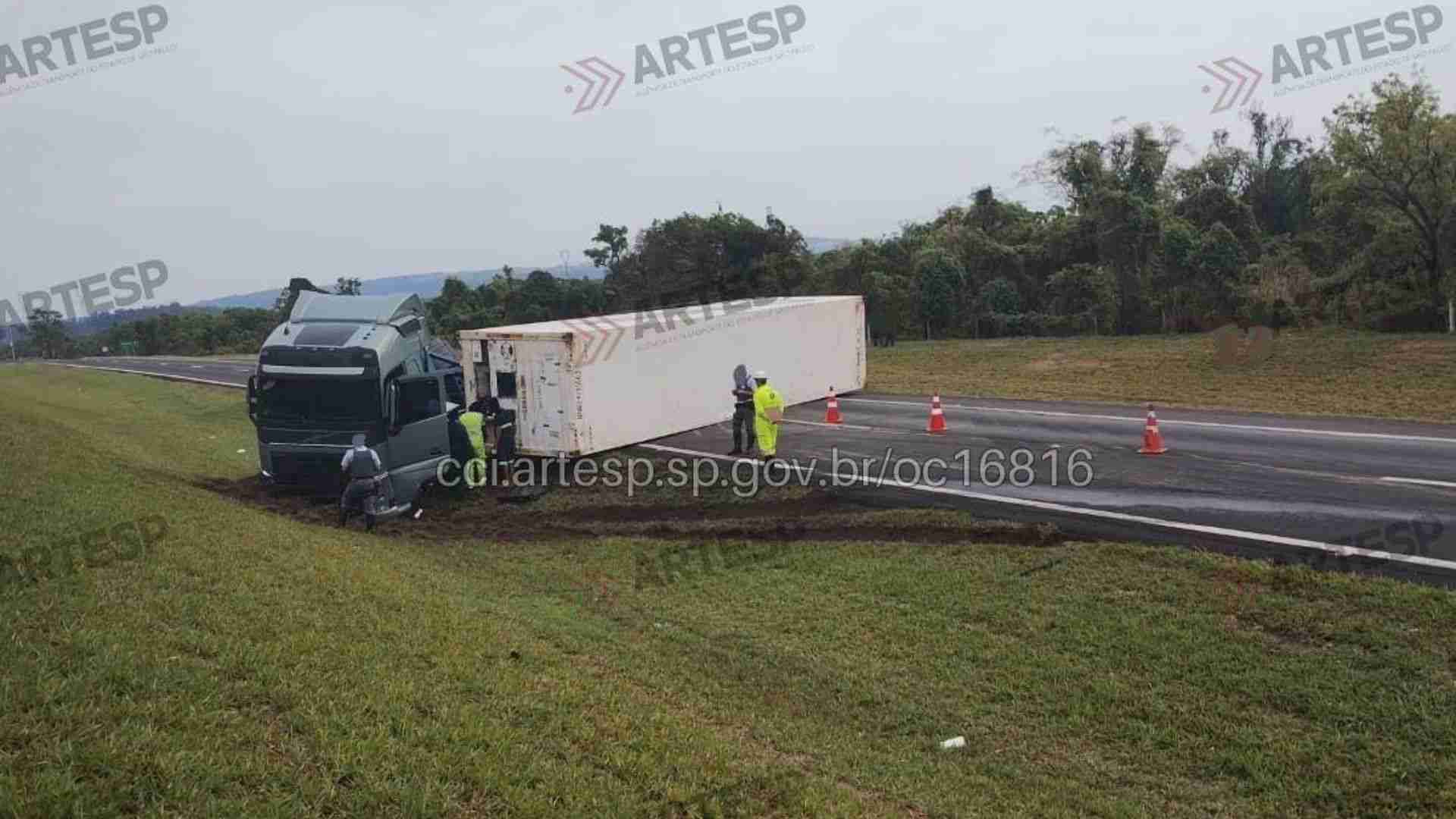 Segundo o relato do condutor, a carreta, um Volvo FH540, transportava cerca de 7 toneladas de utensílios de cozinha. O acidente ocorreu por volta das 07h37 quando, devido à velocidade, a carga traseira começou a se movimentar. Ao frear, o deslocamento se intensificou, levando o motorista a perder o controle do veículo. A carreta chocou-se contra o canteiro central e tombou sobre a faixa de rolamento, bloqueando completamente o tráfego.