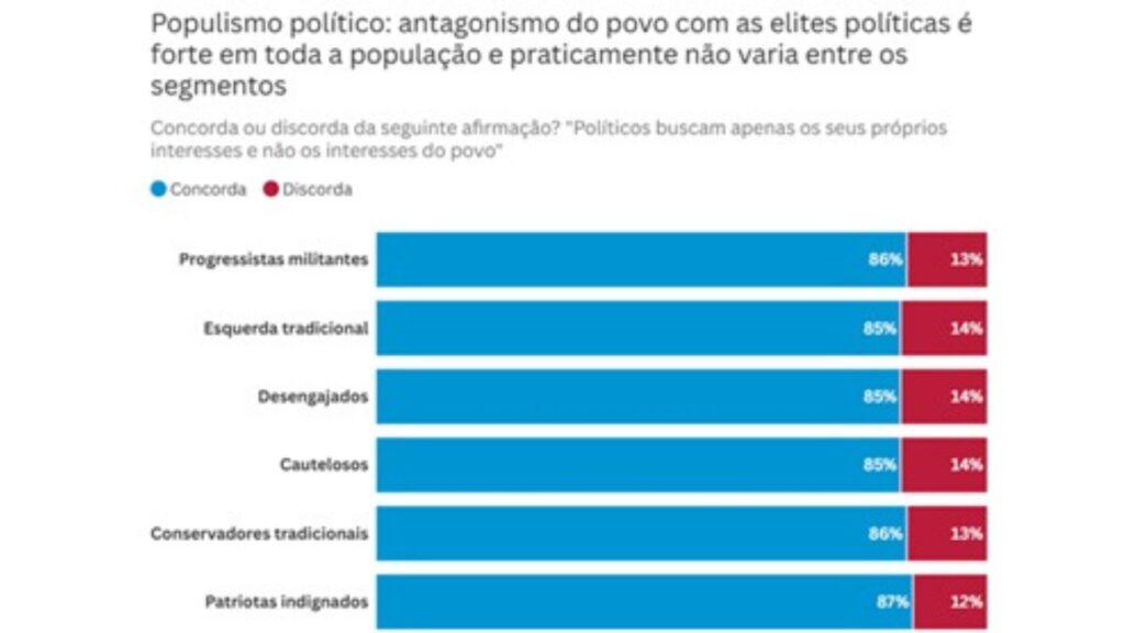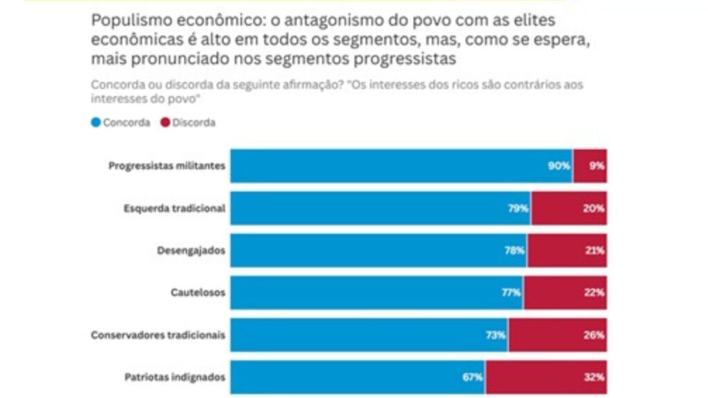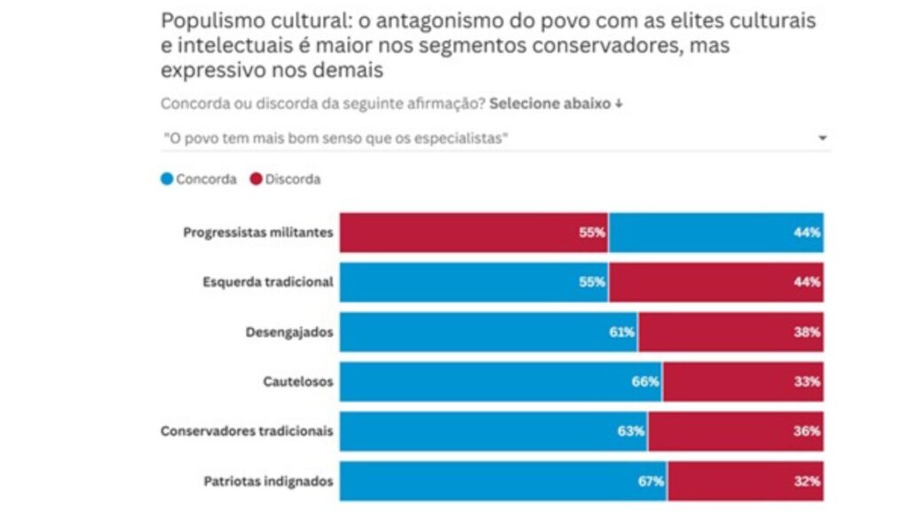 Populismo e reação cultural – de acordo com o diretor da More in Common, Pablo Ortellado, o isolamento desse grupo cria terreno fértil para o crescimento do populismo cultural de direita, que explora o contraste entre uma elite progressista e um “povo conservador”.