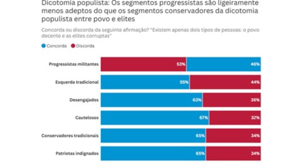 Populismo e reação cultural – de acordo com o diretor da More in Common, Pablo Ortellado, o isolamento desse grupo cria terreno fértil para o crescimento do populismo cultural de direita, que explora o contraste entre uma elite progressista e um “povo conservador”.