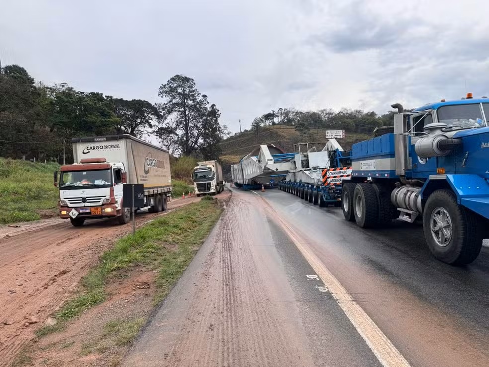Veículo de 123 metros transporta equipamento para indústria em Goiás e segue viagem em ritmo lento; previsão é que comboio deixe o Sul de Minas até o dia 20 de outubro.