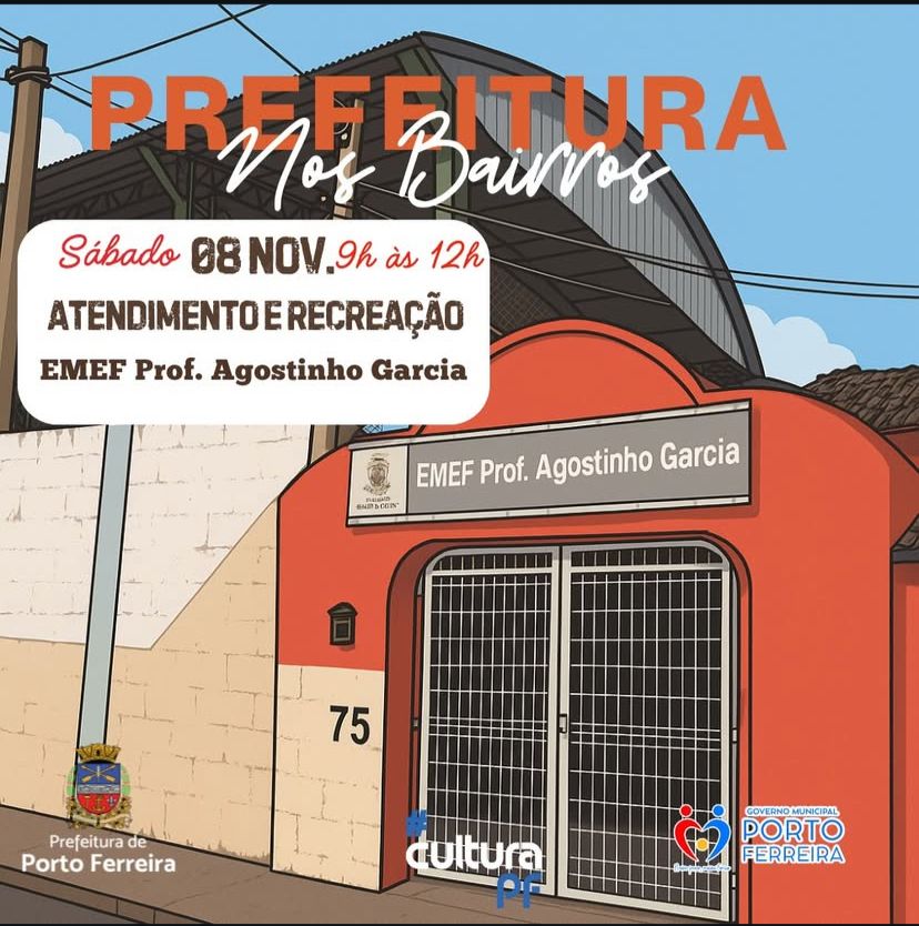 A Prefeitura de Porto Ferreira realiza no sábado, dia 08 de novembro, mais uma edição do programa Prefeitura nos Bairros. Desta vez, a ação acontecerá na EMEF Prof. Agostinho Garcia, localizada no Jardim Anésia, das 9h às 12h, e promete reunir moradores da região em uma manhã de serviços, cidadania e diversão.