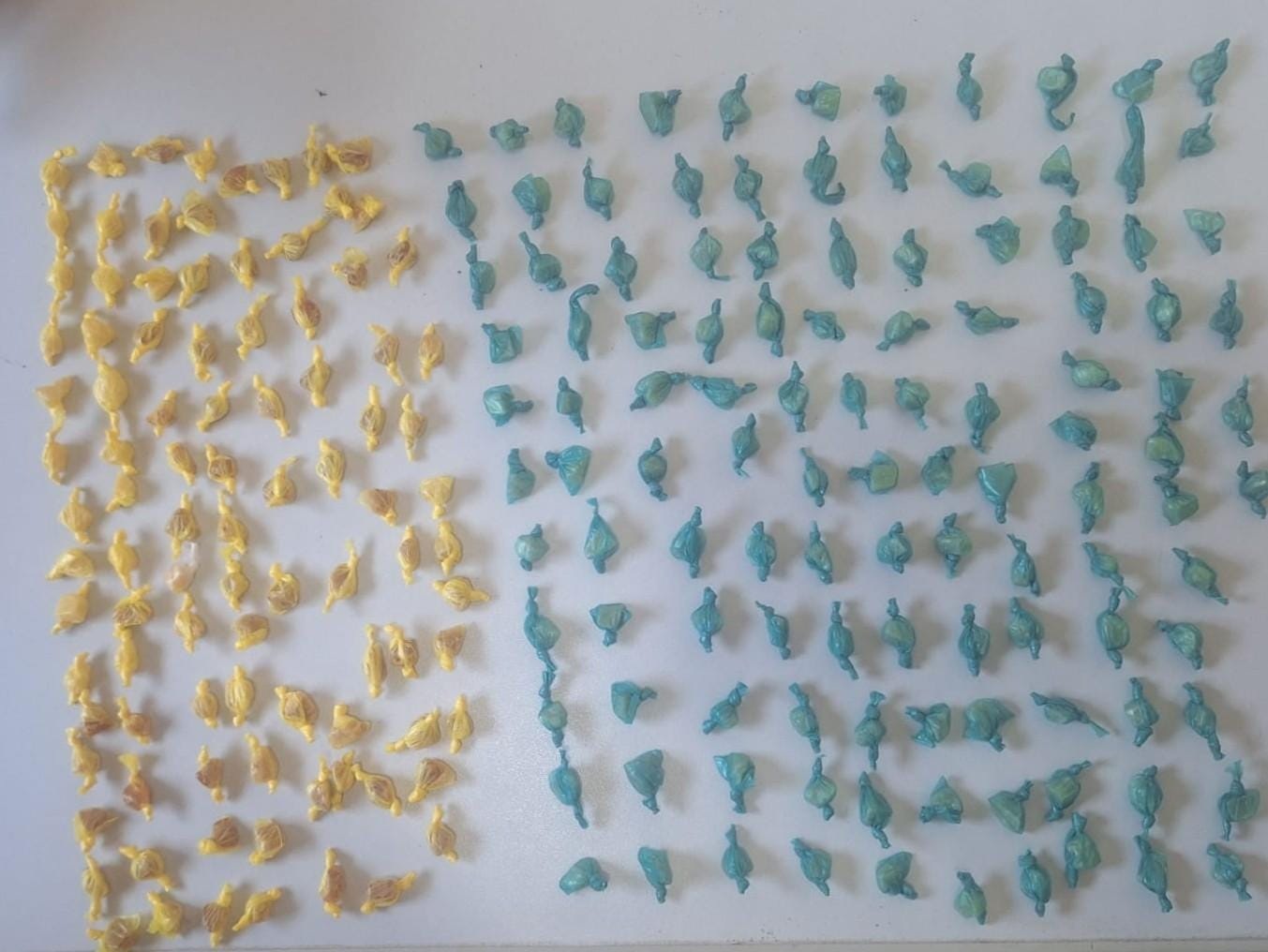 Durante a averiguação, os policiais encontraram o recipiente contendo diversas pedras de crack. Questionados, os dois suspeitos admitiram a posse da droga e indicaram que havia mais entorpecentes em uma bolsa feminina, localizada nas proximidades. Ao todo, foram apreendidas 214 pedras da substância, com peso aproximado de 80 gramas.